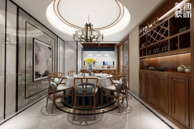 江山一號220平新中式風裝修案例圖—餐 ...