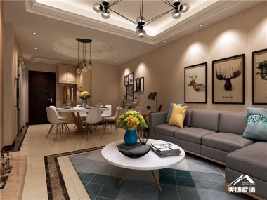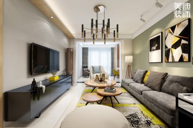 明發國際85㎡輕奢風格案例效果圖—客廳
