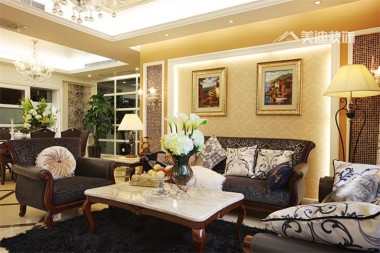 通用時代168平簡歐風(fēng)裝修案例圖—客廳