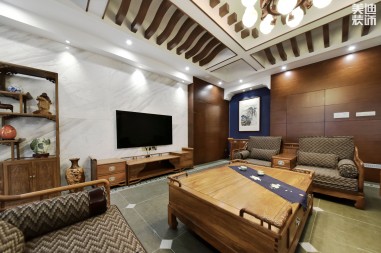 青竹湖曦園390平新中式裝修案例圖—客 ...