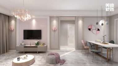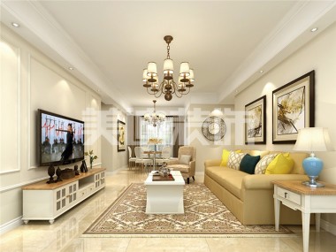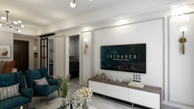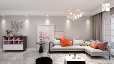 明發(fā)國際85㎡輕奢風(fēng)格案例效果圖—客廳