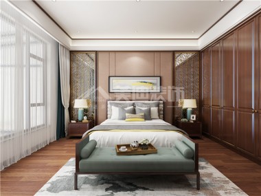 青竹湖曦園390平新中式裝修案例圖—臥 ...