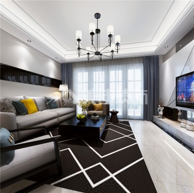 星湖灣99平現代風裝修案例圖—客廳