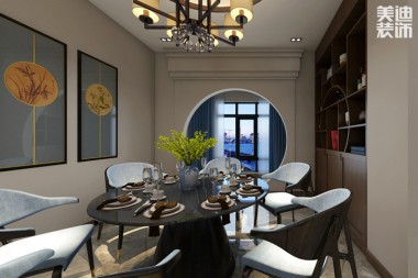 湘麓國(guó)際別墅新中式裝修效果圖-餐廳