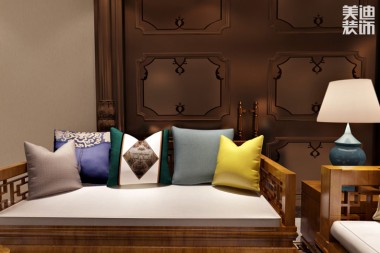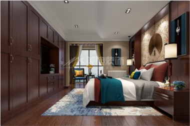 山湖鷺島中式風(fēng)裝修案例圖—臥室