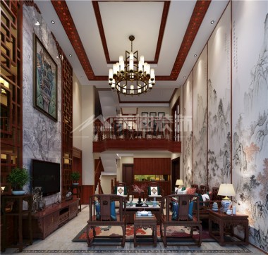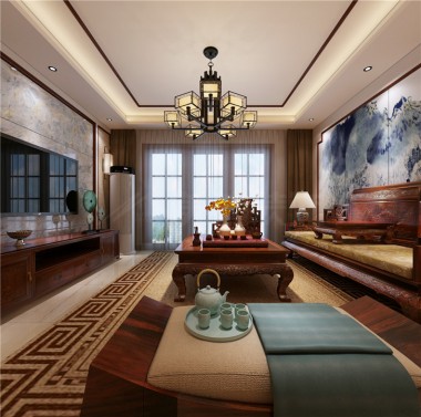 山湖鷺島中式風(fēng)裝修案例圖—客廳