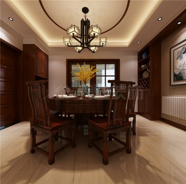 山湖鷺島中式風(fēng)裝修案例圖—餐廳