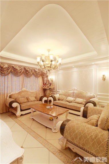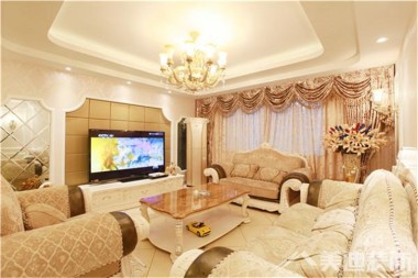 藏瓏320平簡歐風(fēng)裝修案例圖—客廳