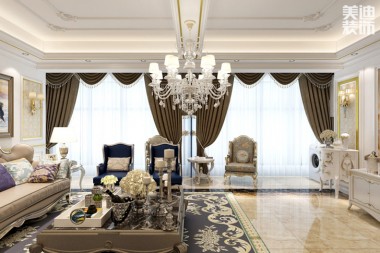 長沙香樟景苑300㎡歐式案例-客廳