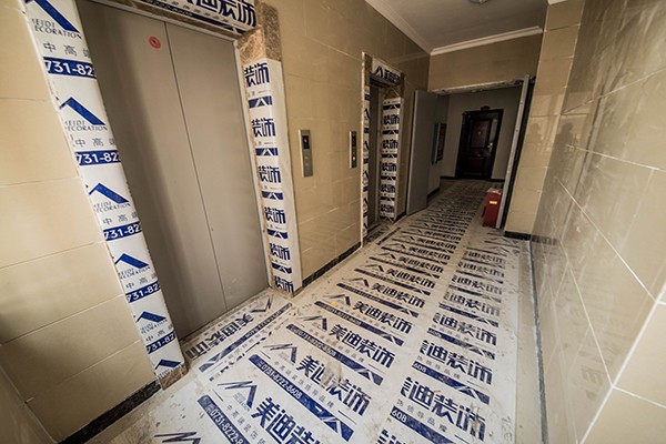 細    節:美迪裝飾地膜鋪滿整個電梯出口及過道