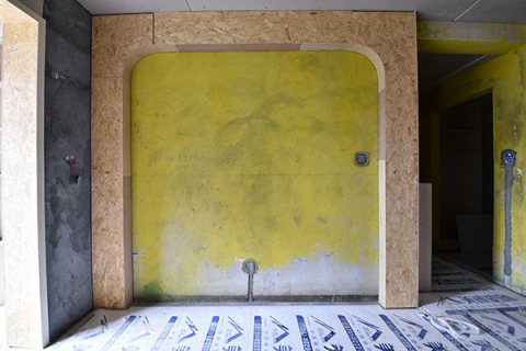 細(xì) 節(jié):背景墻龍骨安裝木質(zhì)飾面板常采用龍骨安裝,根據(jù)背景墻實(shí)際大整片或分片將木龍骨架釘裝上墻。釘裝完后調(diào)整偏差,要求龍骨整體與墻面找平,四角與地面找直。調(diào)整好后每一塊墊木墊塊必須與龍骨牢牢釘合。飾面板釘裝工作完成龍骨安裝后,將飾面板釘上龍骨。
